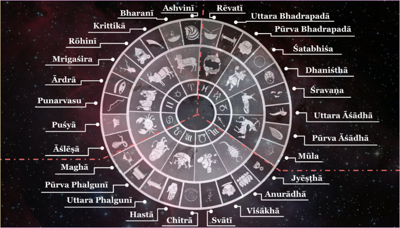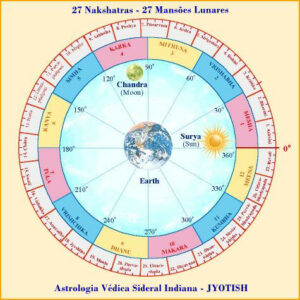 O JYOTISH ou Astrologia Védica utiliza o conhecimento dos 27 Nakshatras (estrelas, asterismos ou mansões lunares) além dos Planetas (Grahas):