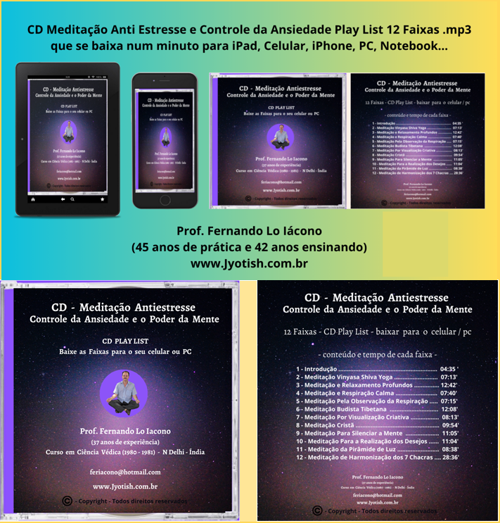 Aqui abaixo tem os meus 2 e-books maravilhosos que lancei para ajudar as pessoas a saber com quem combinam de forma simples, fácil, prática, objetiva, apenas pela data de nascimento das pessoas e o e-book dedicado aos casais, com as dicas que aprendi convivendo com os 4 médicos indianos (Vaidyas), no projeto de implementação do 1º Hospital de Fitoterapia Ayurvédica do Brasil, HMA – Hospital de Medicina Alternativa, quando eu fui o tradutor interprete deles, residia na mesma casa com eles por 3 anos, sendo que eu já havia participado do Curso de Ciência Védica (1980-1981) em Nova Delhi – Índia, quando pela primeira vez conheci o Ayurveda, Jyotish ou Astrologia Védica, Vastu, Muhurta, Yagyas, etc.! Fui o primeiro brasileiro a trazer este conhecimento para o Brasil!