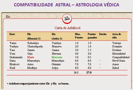 Baseado na minha experiência e vivência prática de 44 anos de muito trabalho, estudo e pesquisa, recomendo que o casal tenha pelo menos 28 pontos de compatibilidade neste teste de pontuação Ashtakoota, se quiserem que a relação dure por muitos anos. Claro que dependendo do estudo dos outros Mapas como expliquei acima! Se conseguirem uma pontuação acima de 28 – 30 pontos seria melhor ainda, pois podemos garantir um relacionamento para toda esta vida do casal!